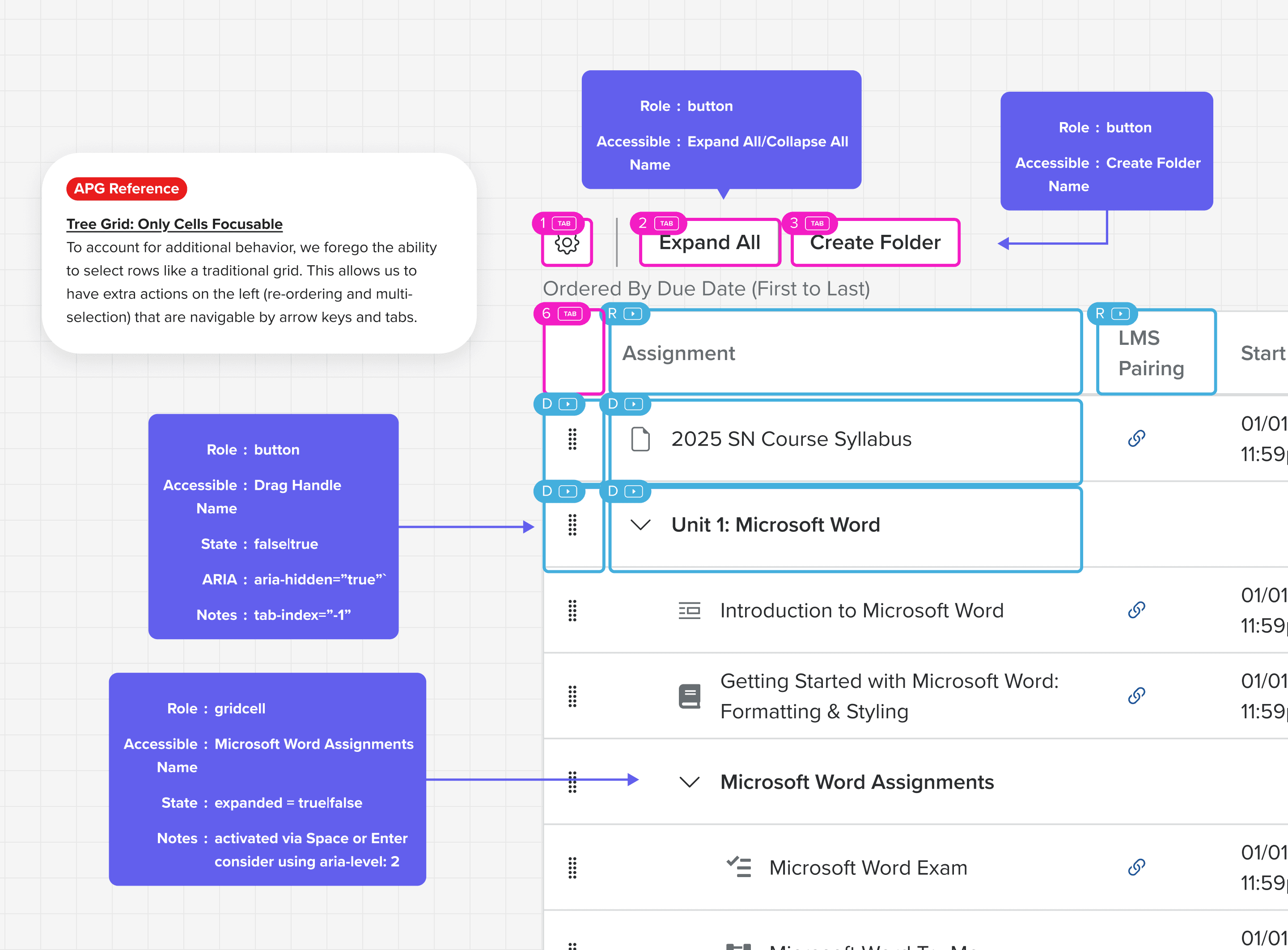 Our first concept was a unified workspace: a single tree grid where instructors could view, edit, and organize all assignments in one place.