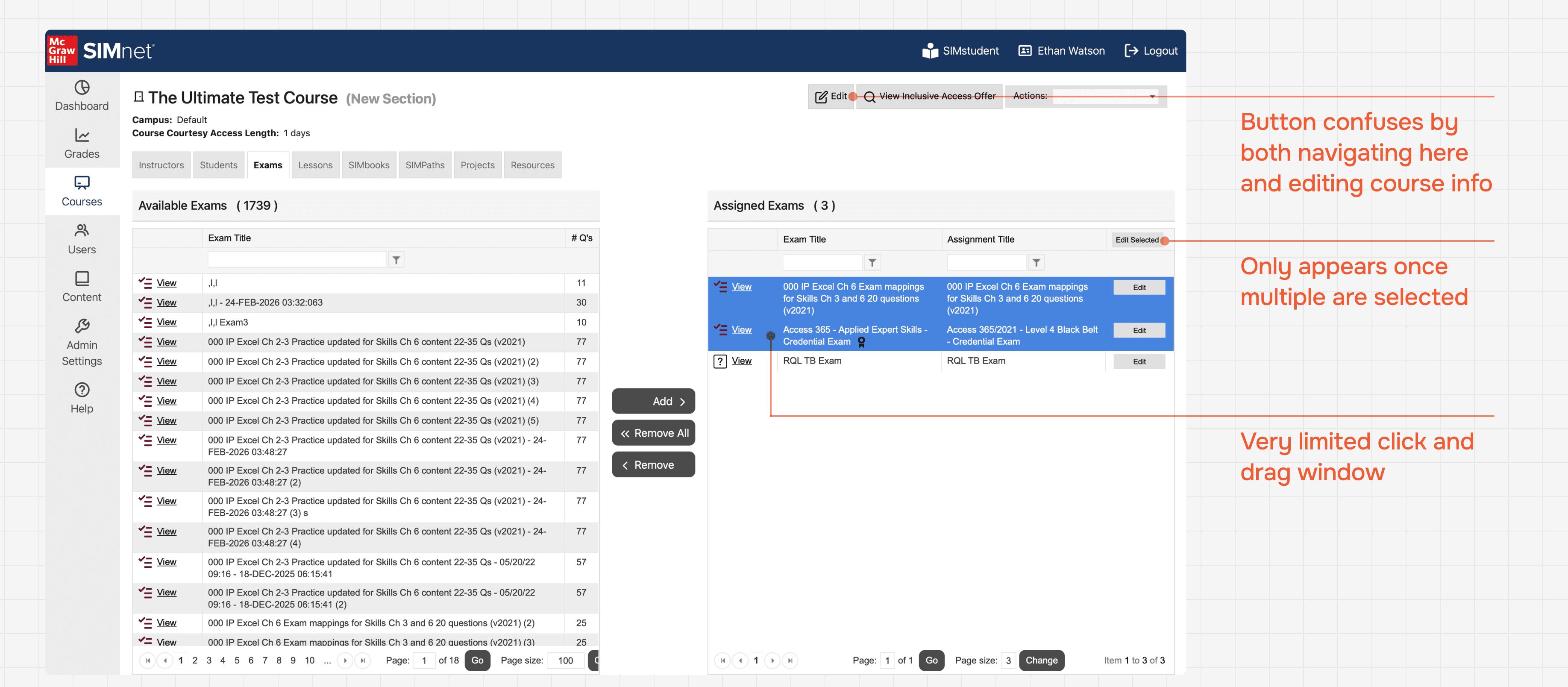 Instructors struggled to discover features, and when they did, the interfaces made tasks nearly impossible to complete independently.