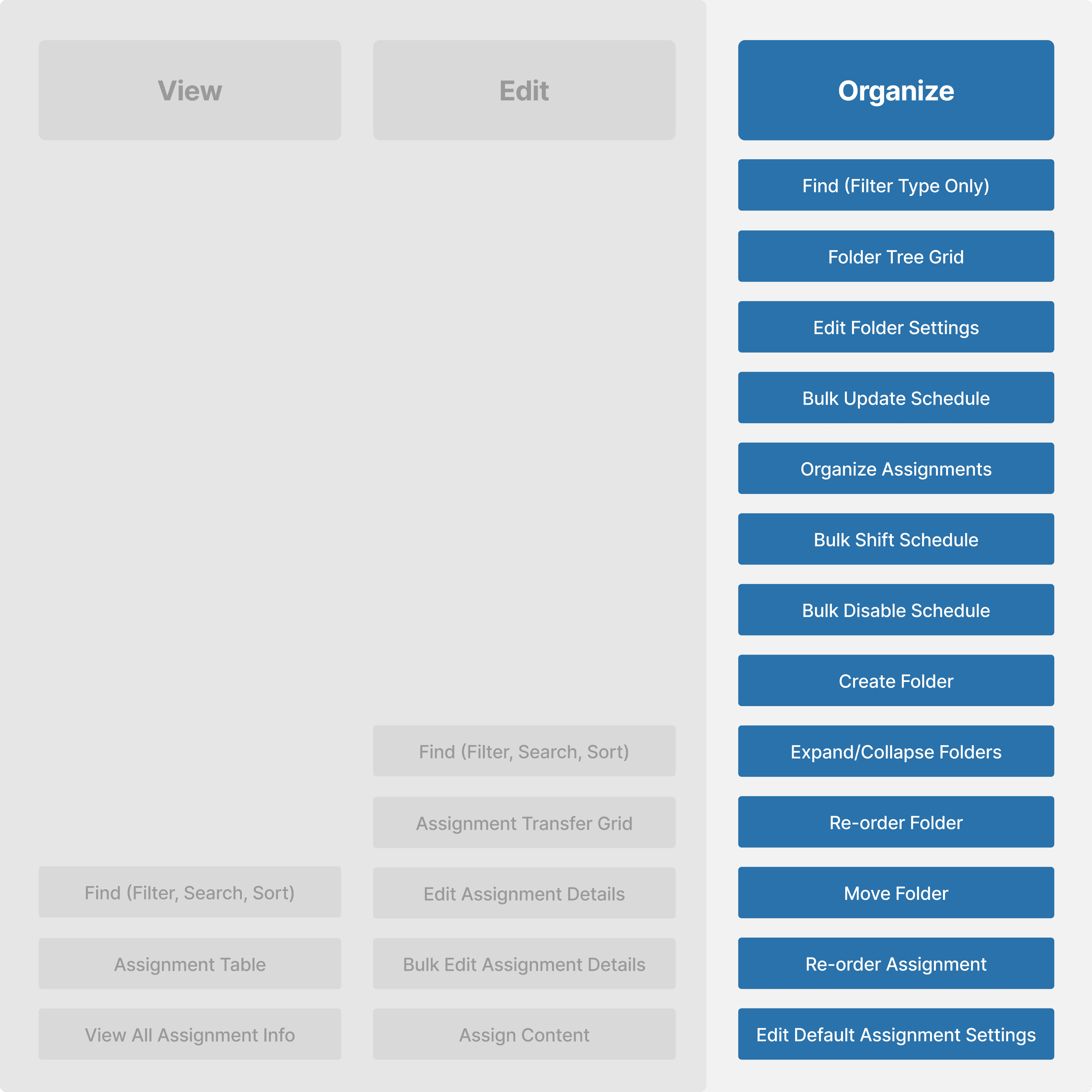 New and legacy instructors struggled with having both bulk editing and organizing tasks available at one time.