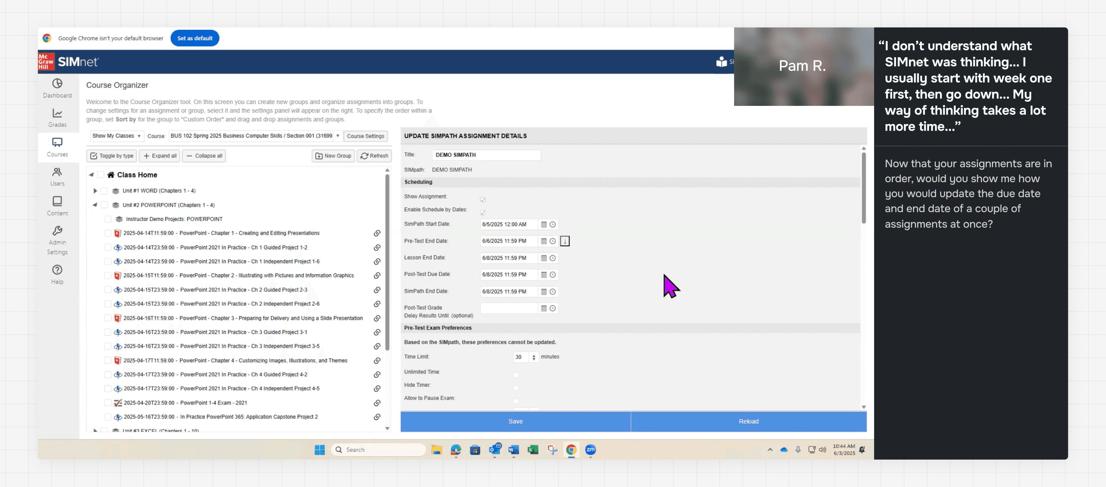 Pam R. showing their work-around to edit assignments dates in bulk